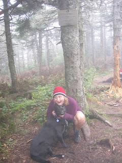 After four intense years of hiking, Ruby completed the 48 on a warm September day with friends! Joining the entourage: Dan, Meena, Peter, Dave and Neil. Also tagging along, Maggie and Phil, dog companions keeping the pace. What a day. After camping in Whitefield we awoke early and packed up the cars. A 4 car caravan drove through Gorham and Berlin and then through the fish hatchery where we stopped to park. York Pond Trail to Bunnell Notch Trail to Kilkenny Ridge to Mt. Cabot . The fog cleared as we neared the summit, meeting up with others for photo shoots! Meena also finishing her 48 on the same day. Meena prepared a pinic for us and we feasted on New York sausage and spicy cheese , PB&J and neil's favorite-lemonade. This peak marked the end of Ruby's quest to hike New Hampshire's 4,000 footers. The end is bittersweet. But there is a silver lining: Neil still needs 28! Throughout this journey, I have made new friends along the way and for thatI am grateful. Thank you everyone!